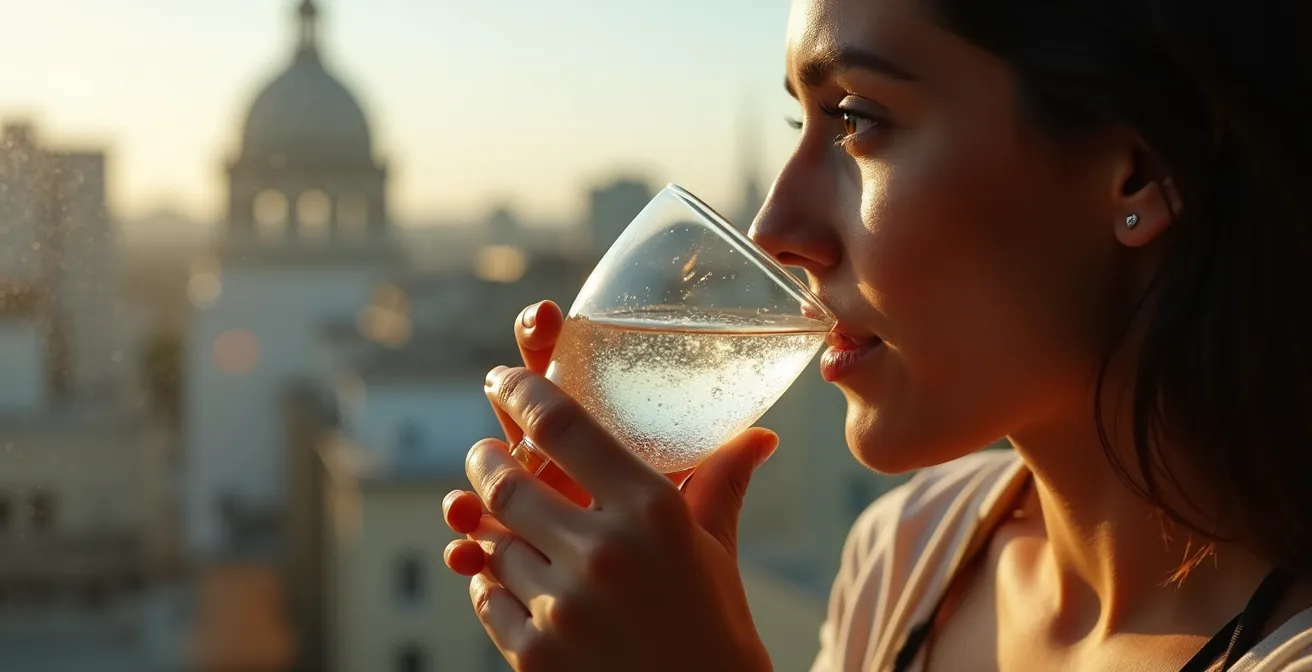 Cuando bebes agua muy baja en minerales, como el agua destilada o algunas aguas filtradas por ósmosis inversa, estás introduciendo un líquido con una carga mineral casi nula. Tu cuerpo, en un intento por mantener el equilibrio, puede incluso extraer minerales de tus reservas para «enriquecer» esa agua, lo que a la larga te desmineraliza. El agua pasará por tu sistema, aumentará el volumen de orina y será eliminada sin haber hidratado eficazmente tus tejidos a nivel celular. Es la «sed paradójica»: bebes, pero tus células siguen sedientas.